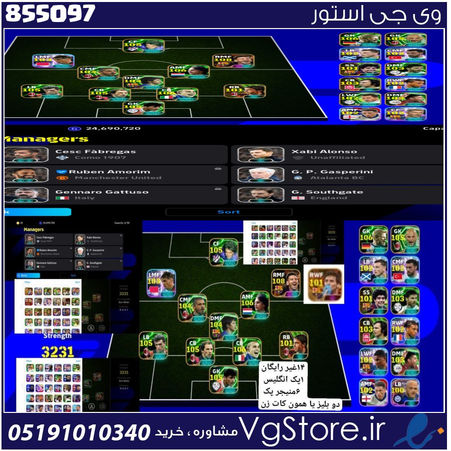 توضیحات: 14غیر رایگان 2بیگ تایم 6منیجر 1پک انگلیس 800کوین با بوستر درست مربی تا قدرت تیم تا 3240می ره