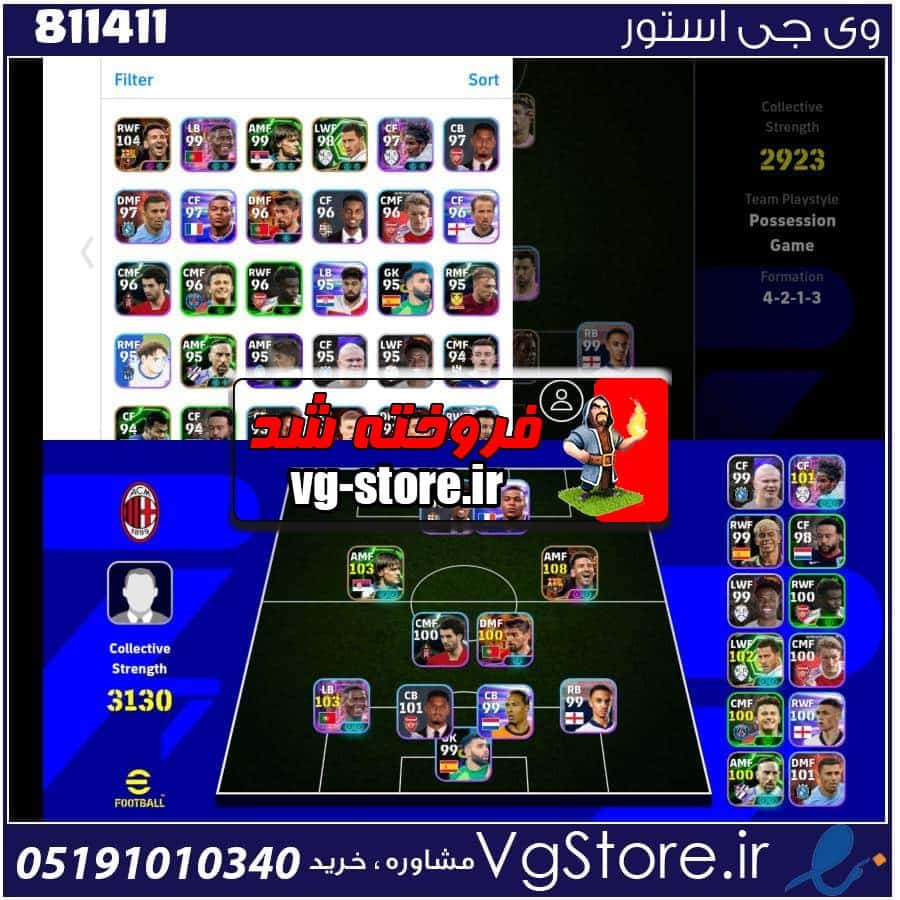 اکانت بازی ای فوتبال لول 3130 کد 811411