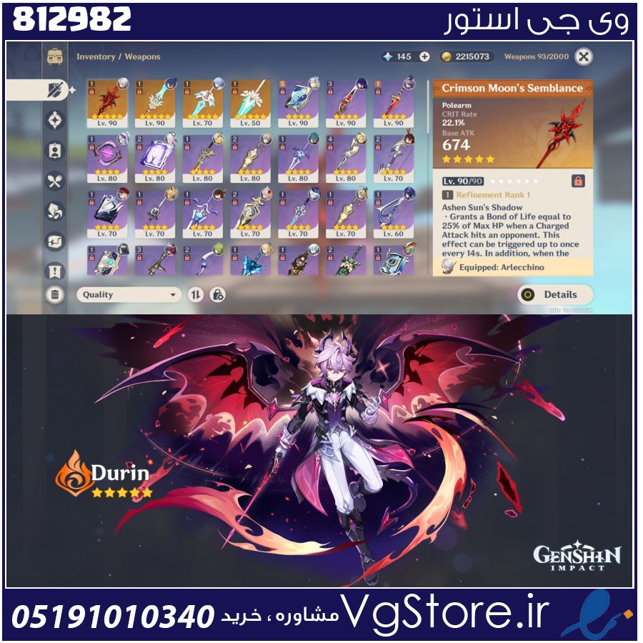 اکانت بازی گنشین ایمپکت لول 58 کد 812982