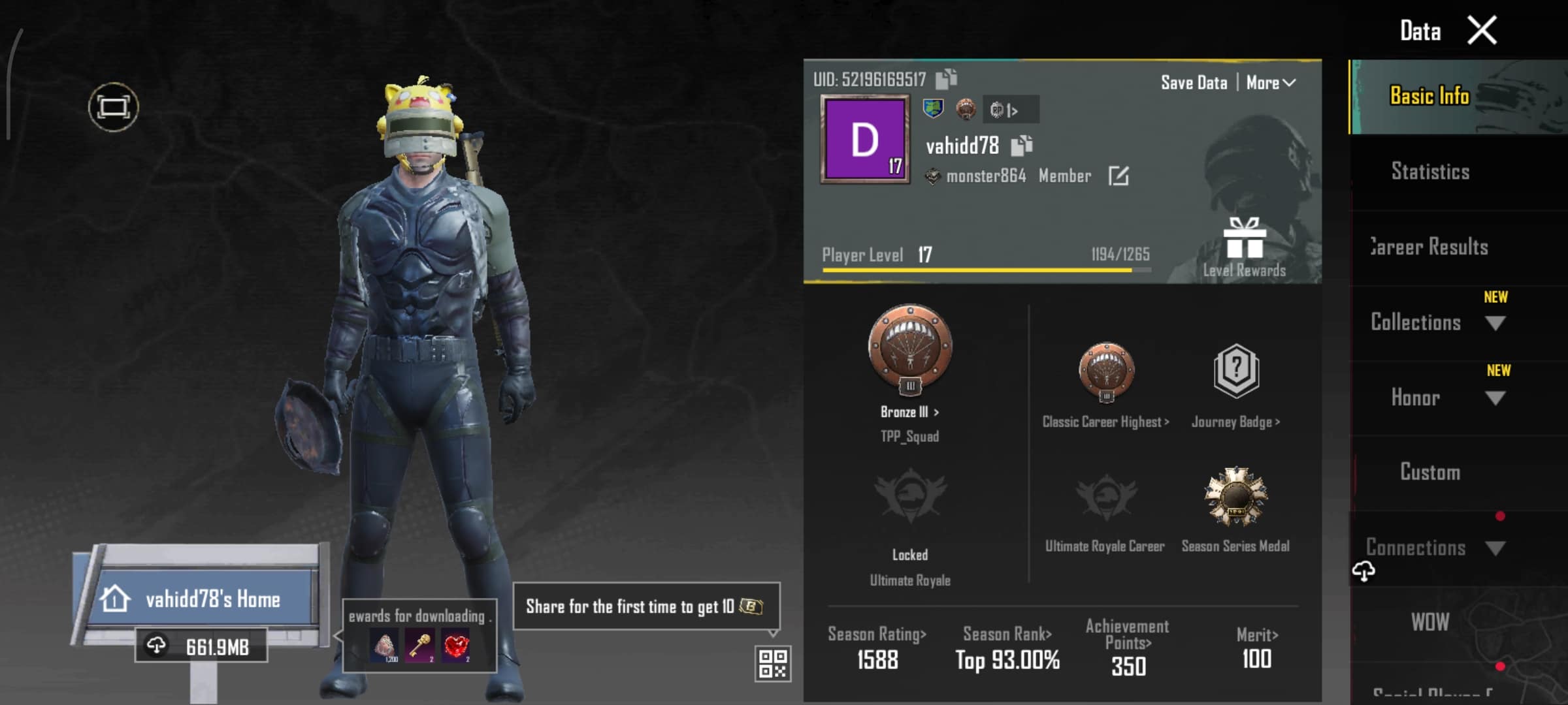 اکانت پابجی موبایل لول 17 کد 51644