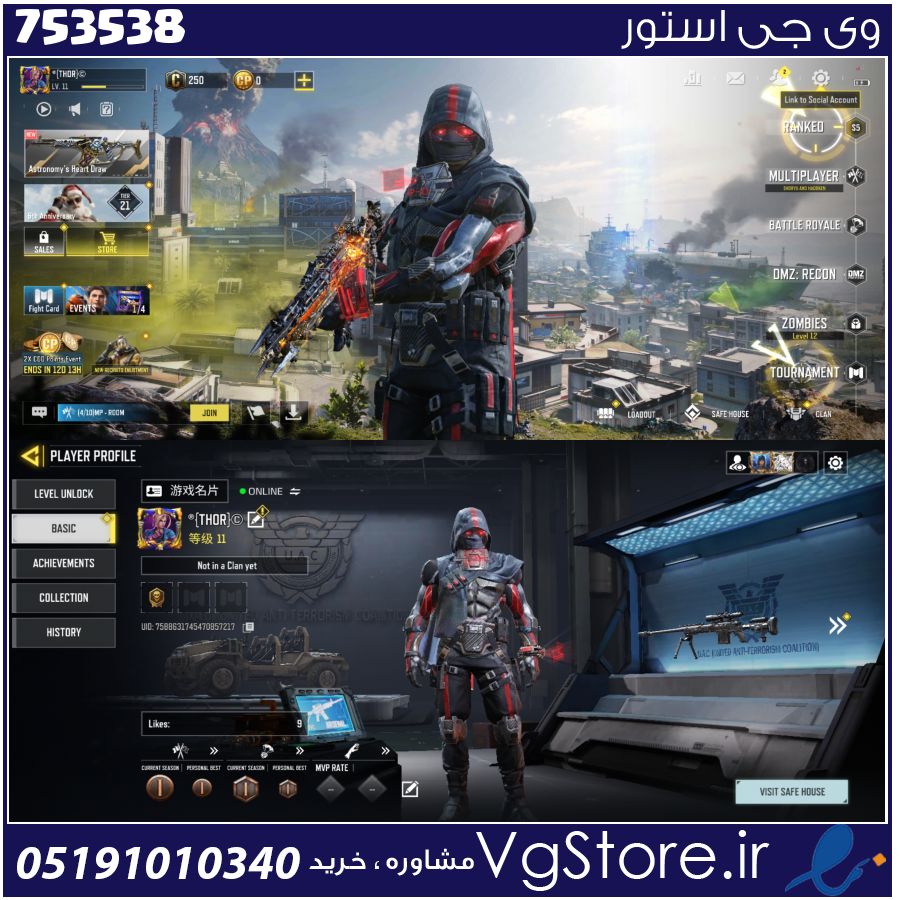 اکانت کالاف دیوتی موبایل لول 11 ریجن هند کد 753538