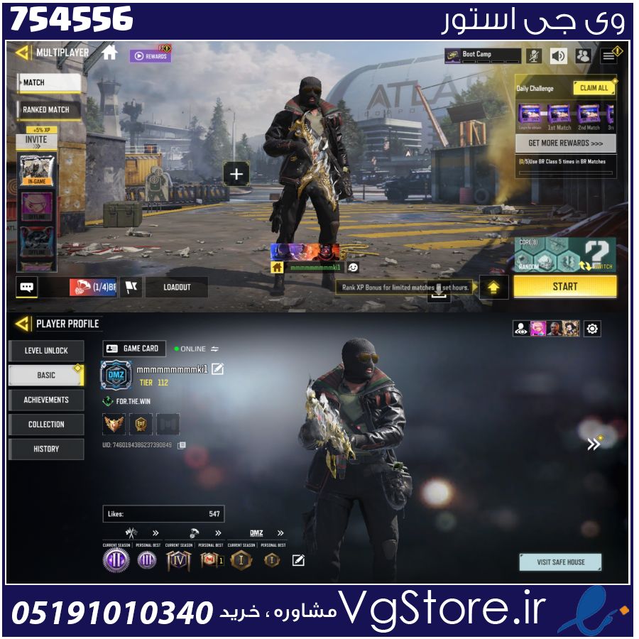 اکانت کالاف دیوتی موبایل لول 114 ریجن هند کد 754556