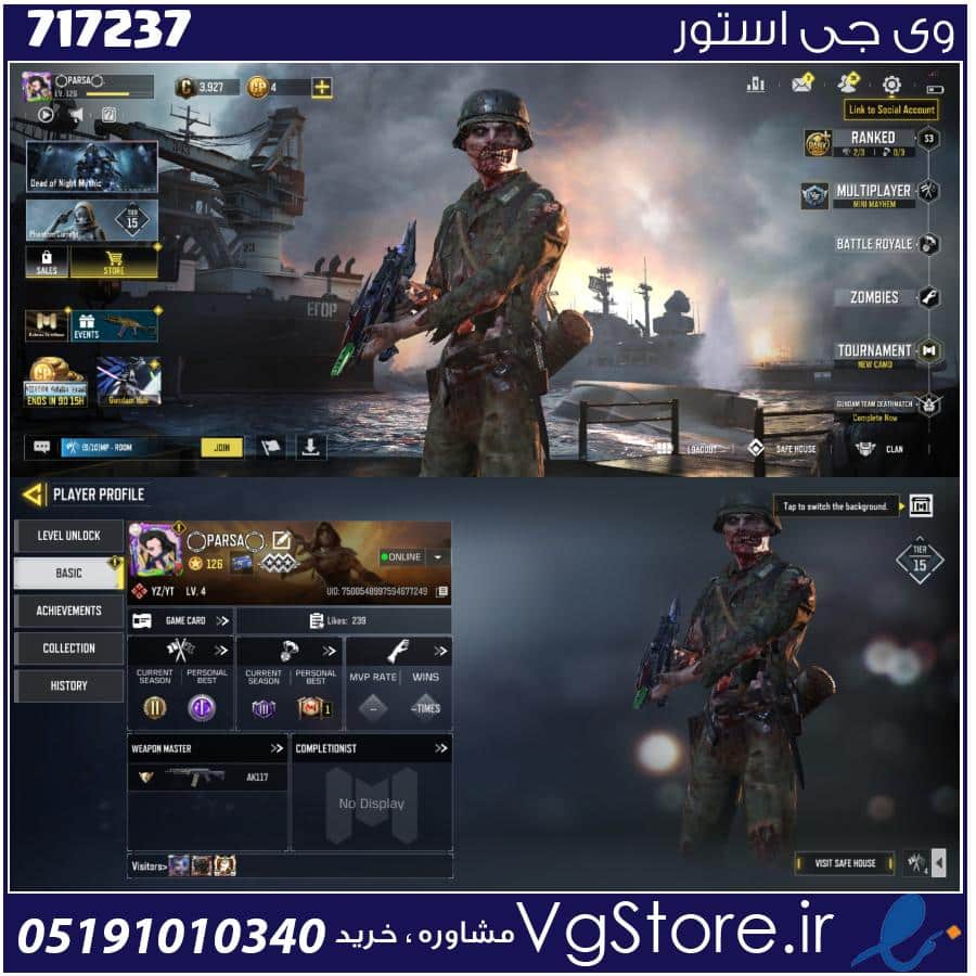 اکانت کالاف دیوتی موبایل لول 126 ریجن هند کد 717237