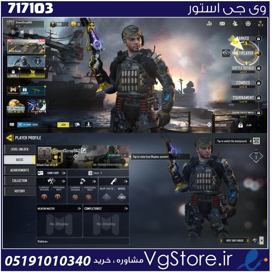 اکانت کالاف دیوتی موبایل لول 2 ریجن هند کد 717103