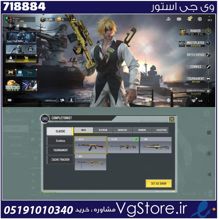 اکانت کالاف دیوتی موبایل لول 210 ریجن اروپا کد 718884