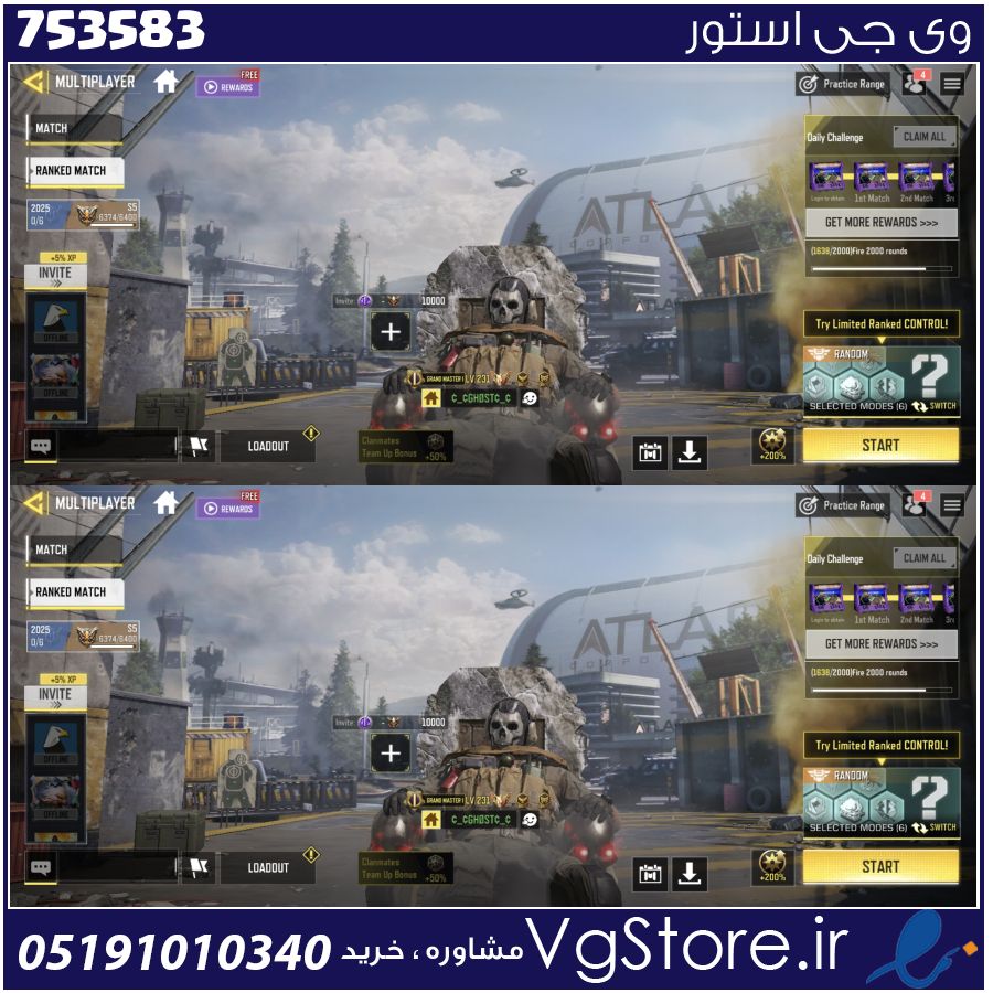 اکانت کالاف دیوتی موبایل لول 231 ریجن هند کد 753583