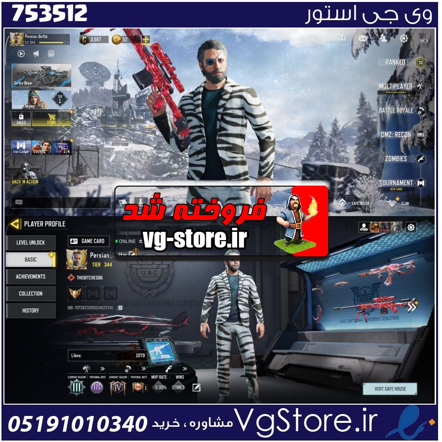 اکانت کالاف دیوتی موبایل لول 344 ریجن هند کد 753512