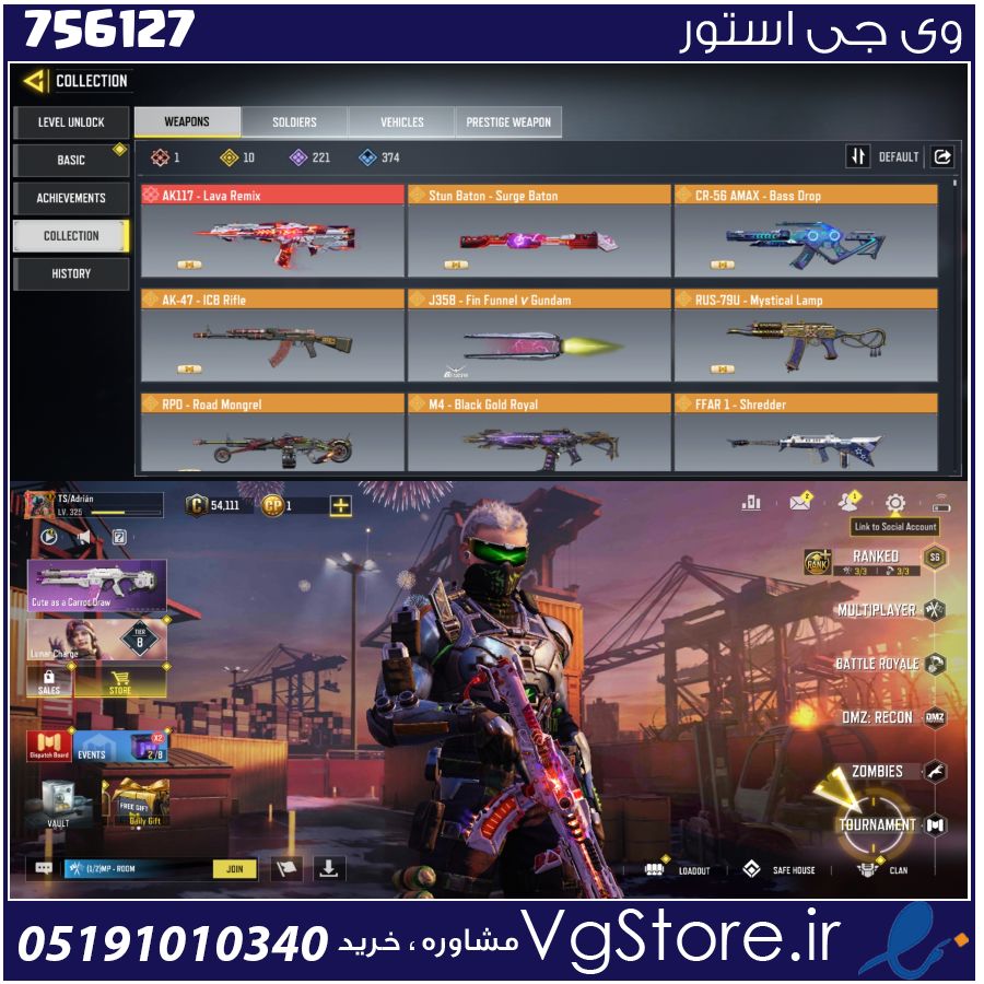 اکانت کالاف دیوتی موبایل لول 370 ریجن اروپا کد 756127