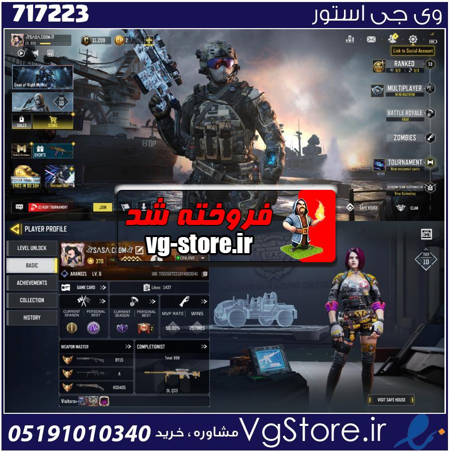اکانت کالاف دیوتی موبایل لول 379 ریجن هند کد 717223
