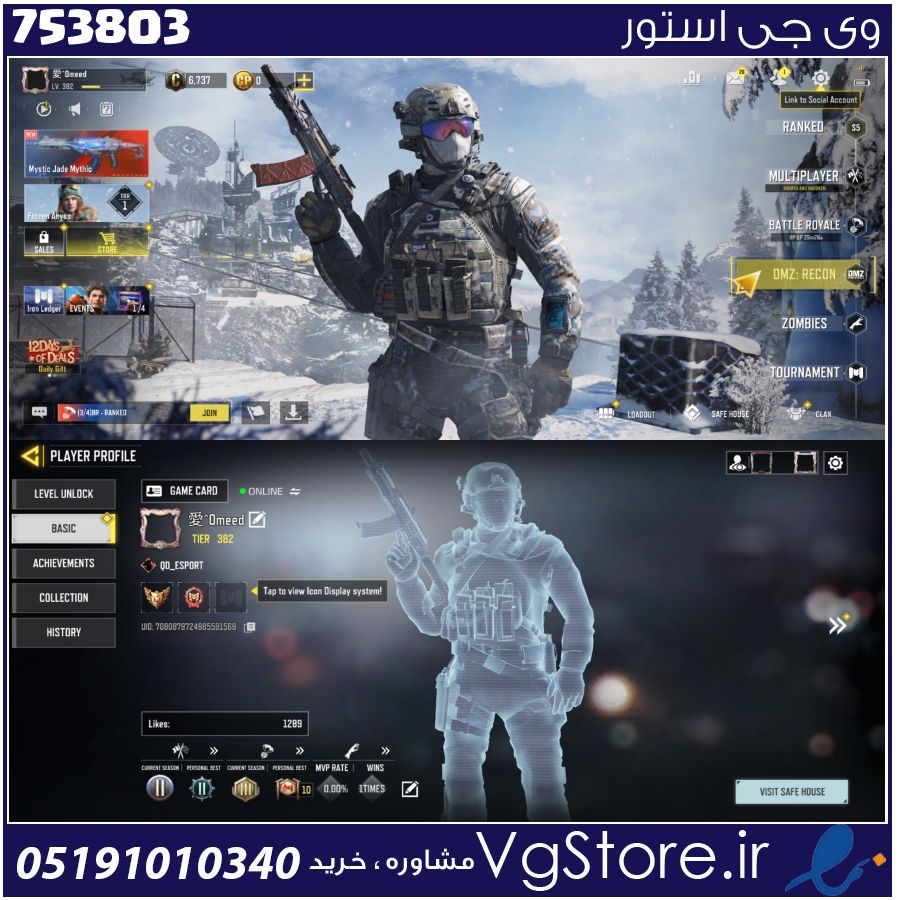 اکانت کالاف دیوتی موبایل لول 382 ریجن هند کد 753803