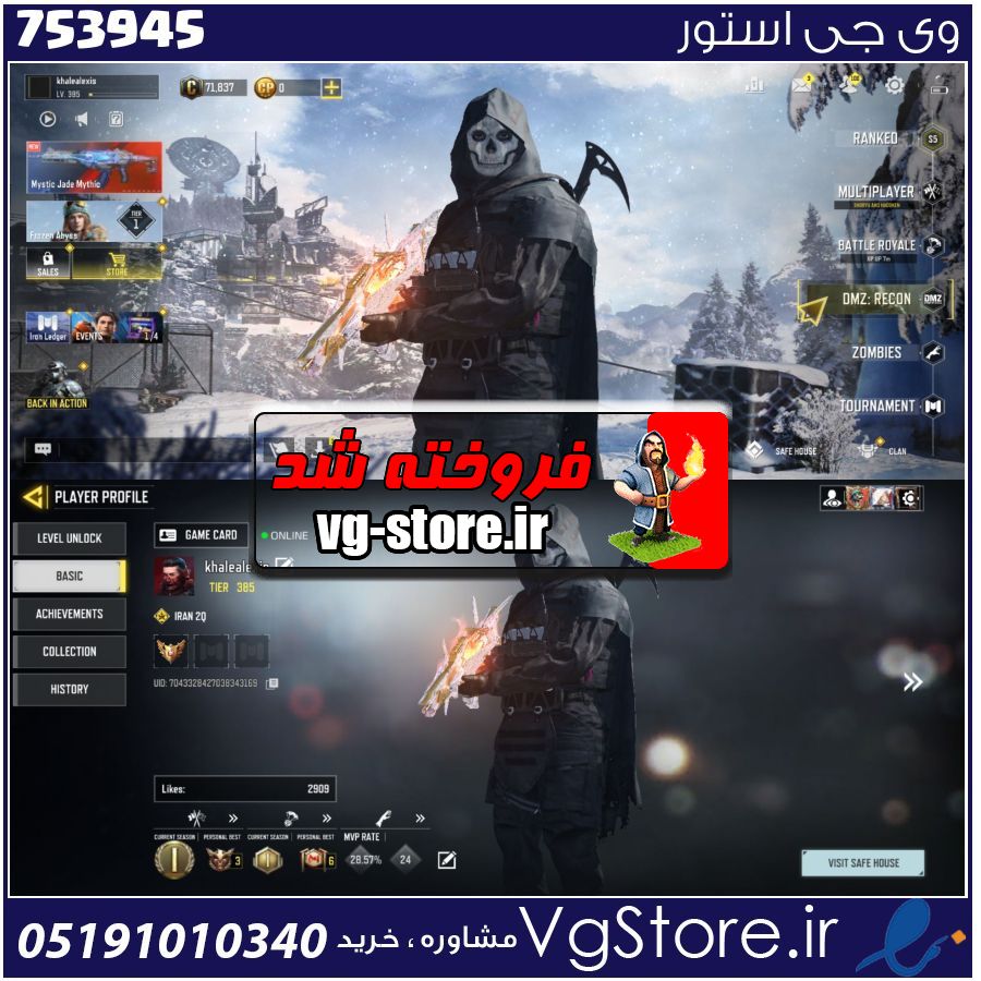 اکانت کالاف دیوتی موبایل لول 385 ریجن هند کد 753945