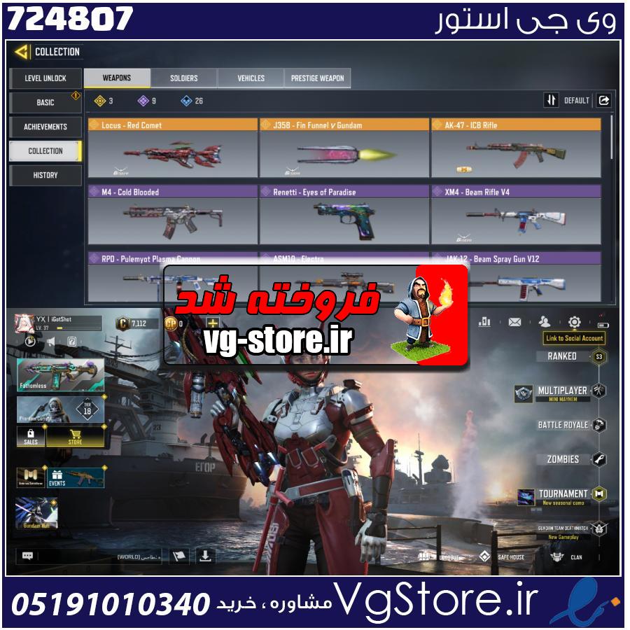 اکانت کالاف دیوتی موبایل لول 40 ریجن هند کد 724807
