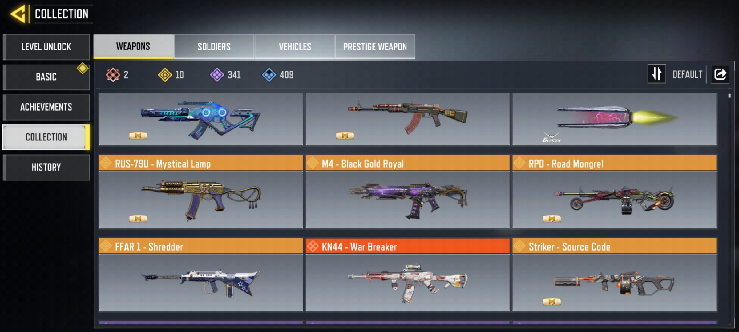 تعداد تفنگ (gun) های لجندری (legendary) : 10