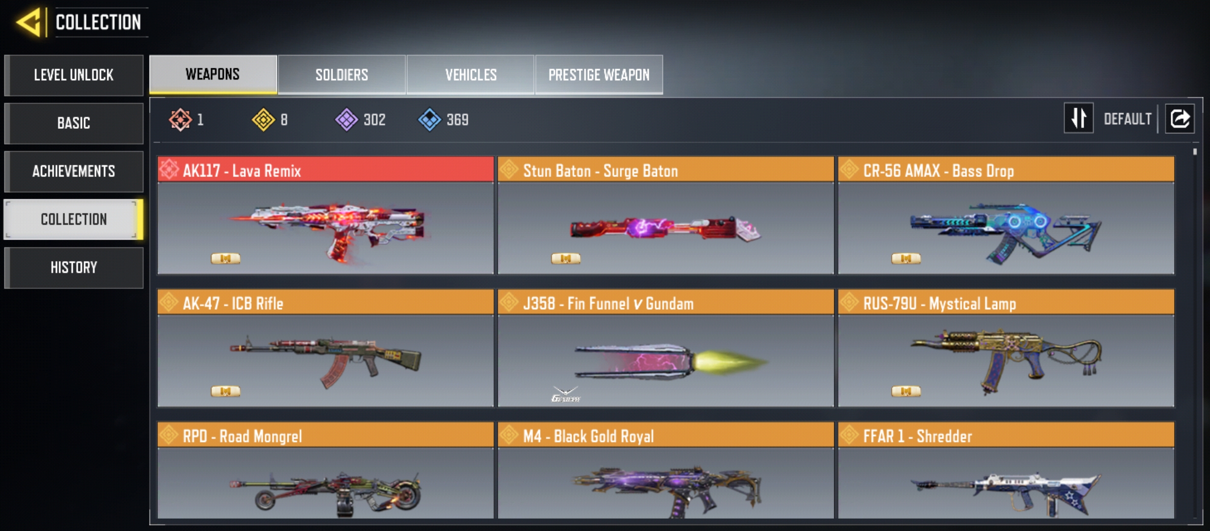 تعداد تفنگ (gun) های لجندری (legendary) : 8