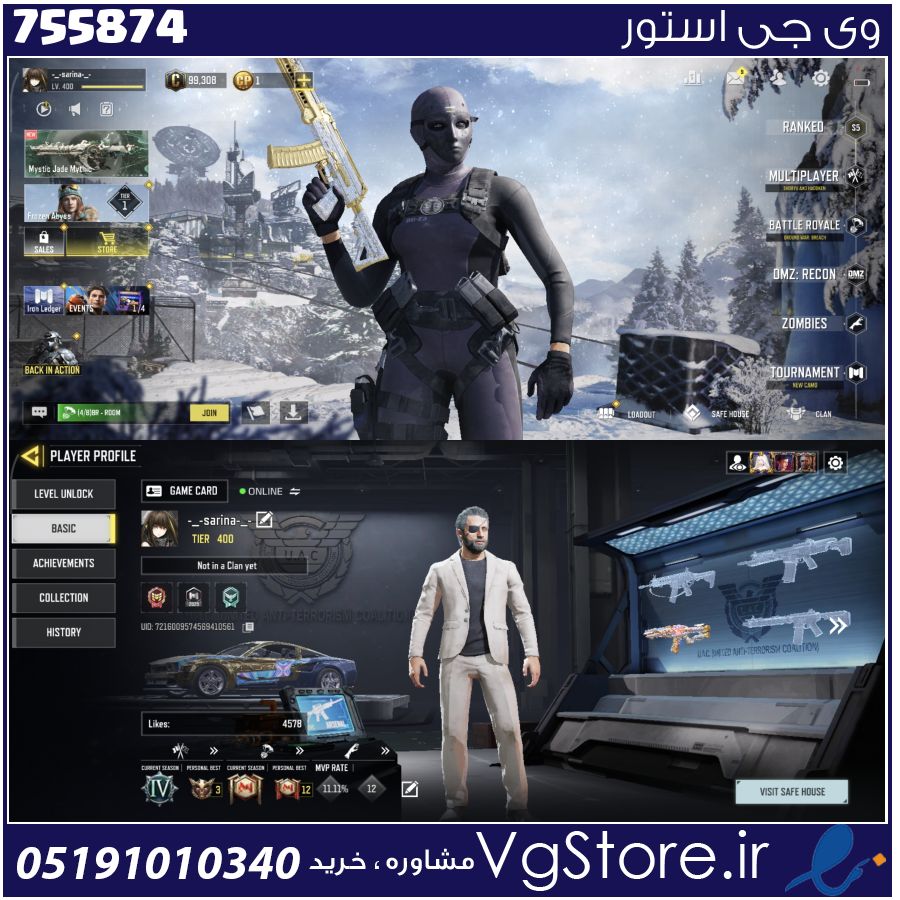 اکانت کالاف دیوتی موبایل لول 400 ریجن هند کد 755874