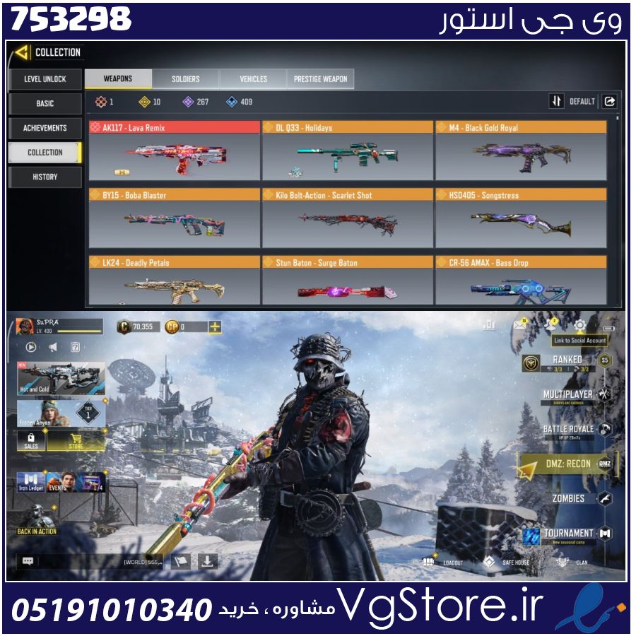 اکانت کالاف دیوتی موبایل لول 400 ریجن هند کد 753298