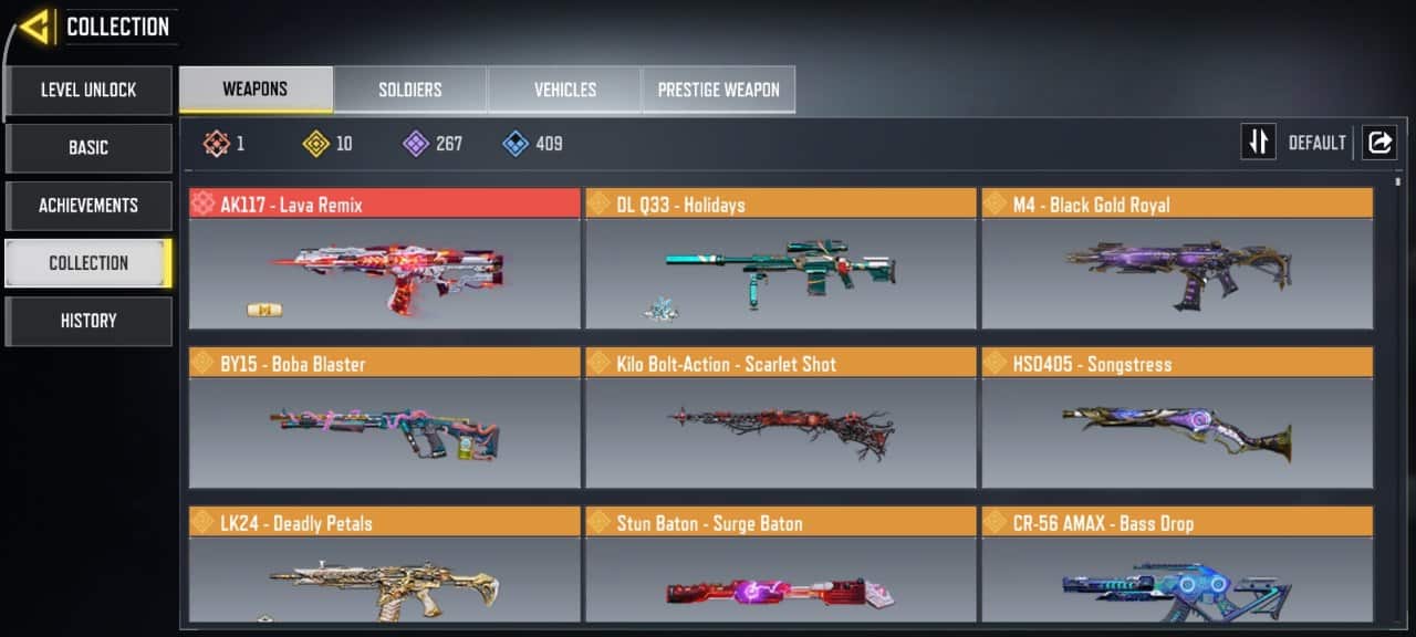 تعداد تفنگ (gun) های لجندری (legendary) : 10