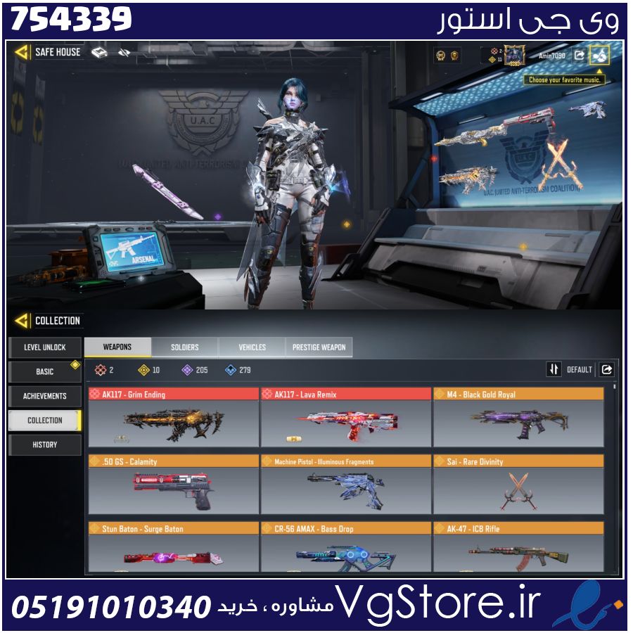 اکانت کالاف دیوتی موبایل لول 400 ریجن هند کد 754339