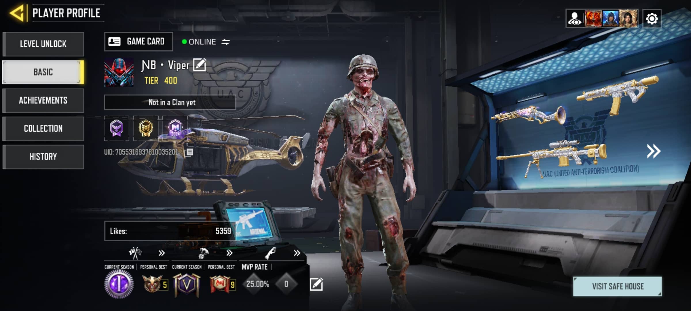 توضیحات: اچ اس ۸ دور خورده تندرا گرگی ۹ دور خورده بالای ۱۵ بتل پس داره شاتگان ها پلاتینیوم هست ۳۰ تا گلد داره ۱۰ دایموند از جمله hs . DLQ_33 . Locas و… داره ۴ تا اسکین گردونه داره کلی اسکین کریت داره کلی نید لجند داره از هر گان عالی مثل ak117 . DLQ_33 و… بالای ۴ تا اپیک داره و تمام گان های عالی رو گلد و دایموند کردم اکانت بسیار عالی و کمیاب هست و تحویل فوری هست