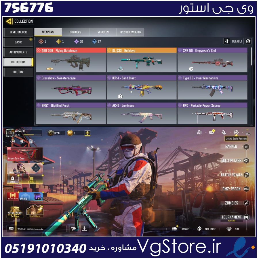 اکانت کالاف دیوتی موبایل لول 52 ریجن هند کد 756776