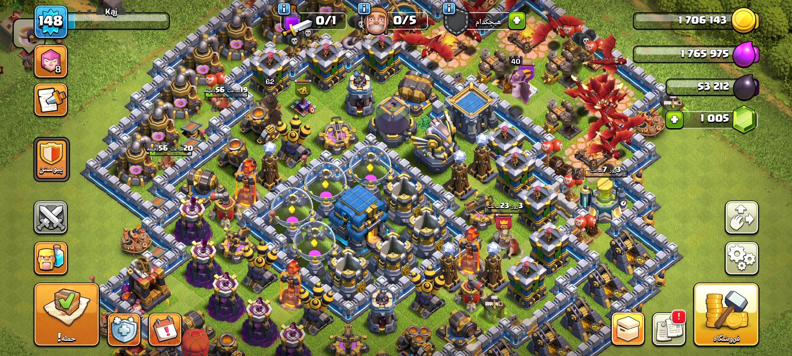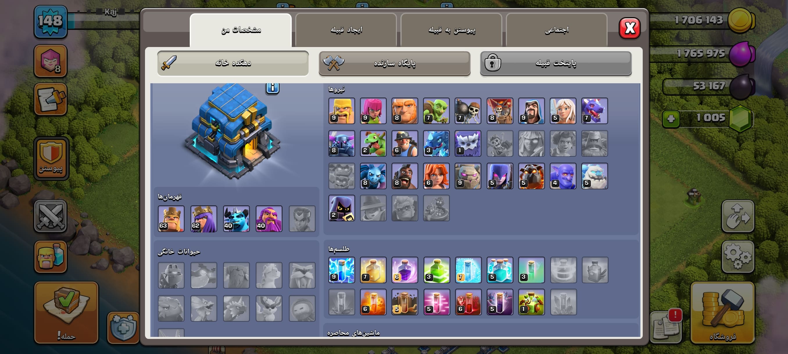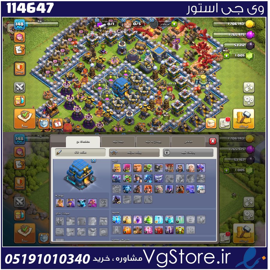 اکانت کلش اف کلنز تاون هال 12 لول 148 کد 114647