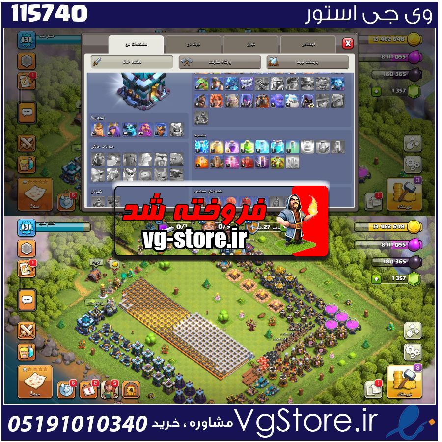 اکانت کلش اف کلنز تاون هال 13 لول 131 کد 115740