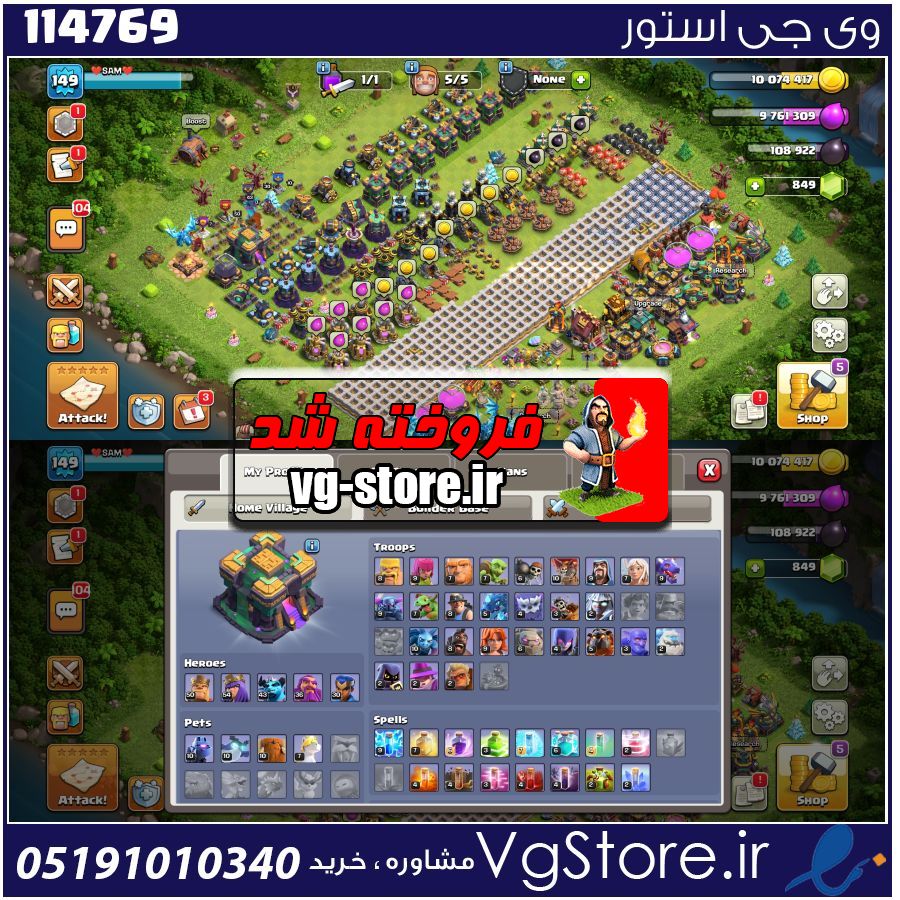 اکانت کلش اف کلنز تاون هال 14 لول 149 کد 114769