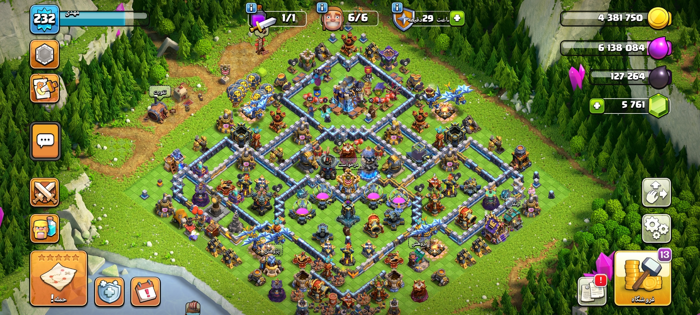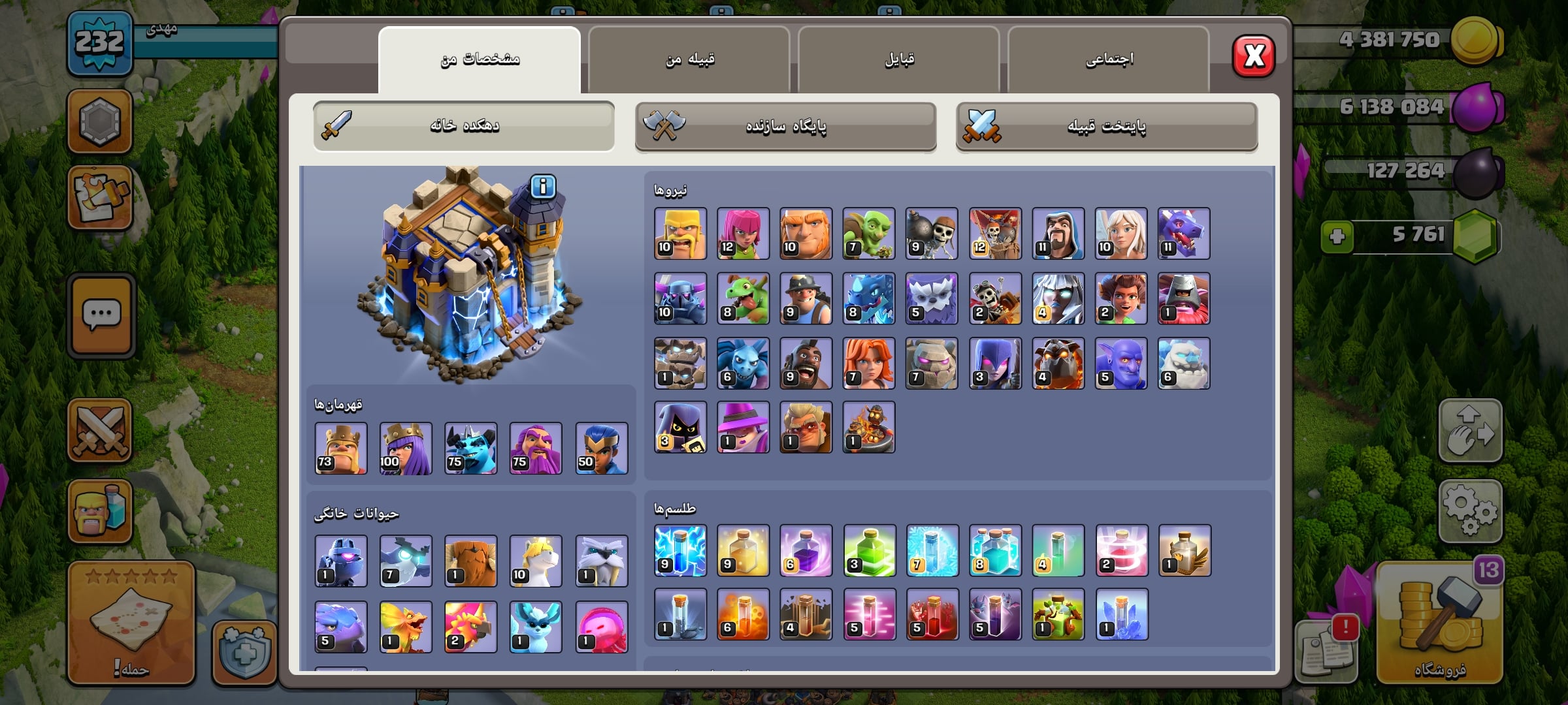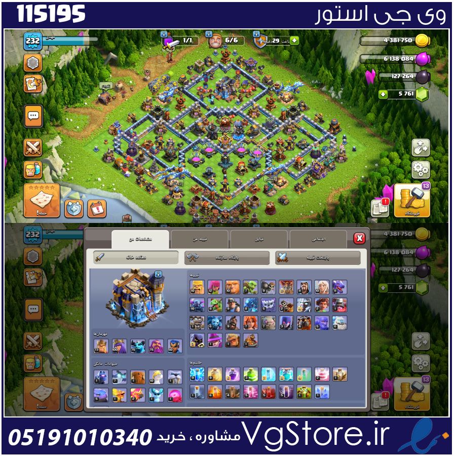 اکانت کلش اف کلنز تاون هال 16 لول 208 کد 115268