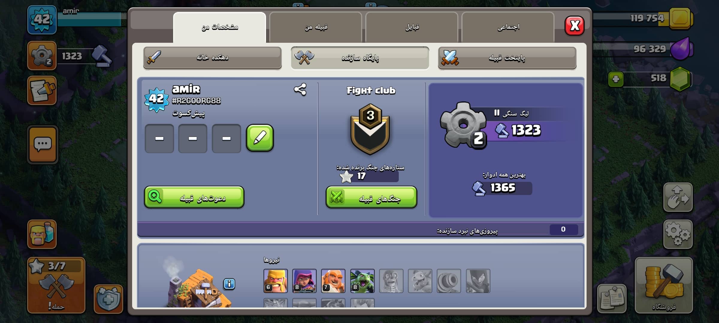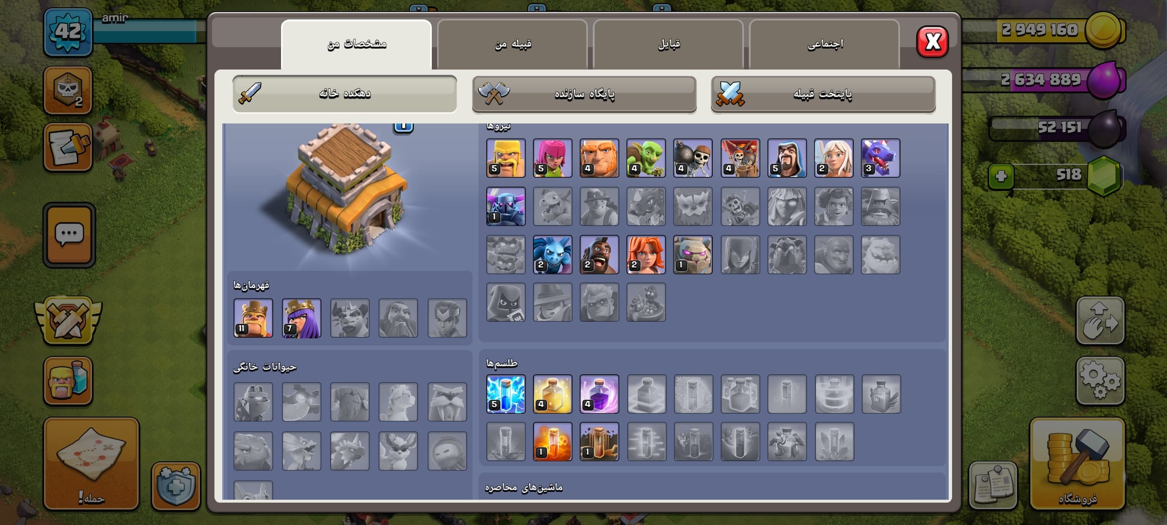 اکانت کلش اف کلنز تاون هال 8 لول 42 کد 114888