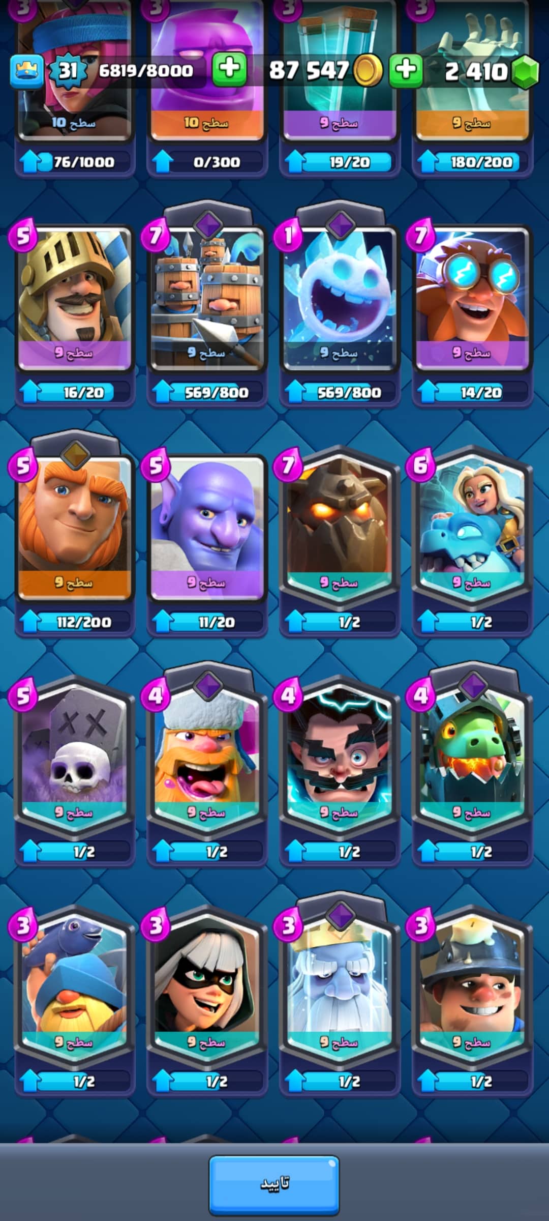 اکانت کلش رویال لول 31 کد 32640