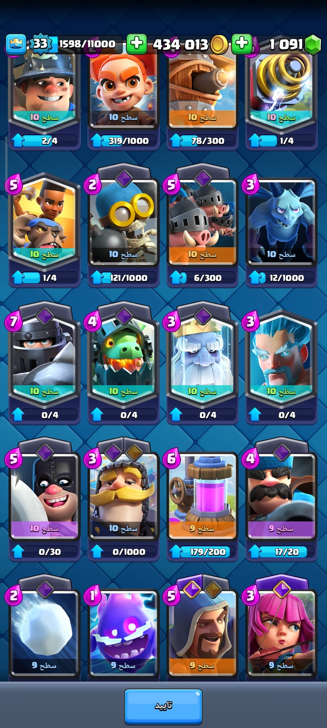 اکانت کلش رویال لول 33 کد 32778