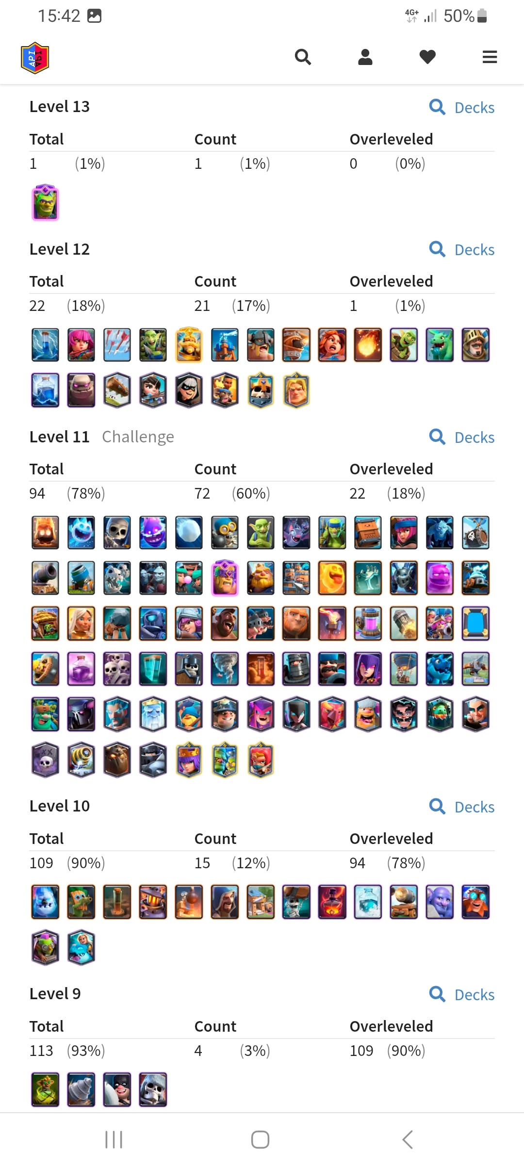 تعداد کارت های لول 15 : 0